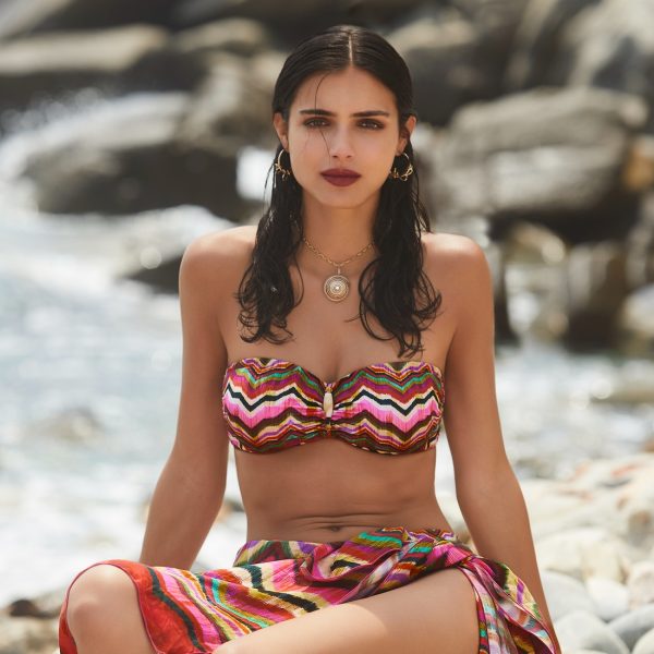 Maillot bandeau 2 pièces avec mousses imprimé Missoni rose Miranda