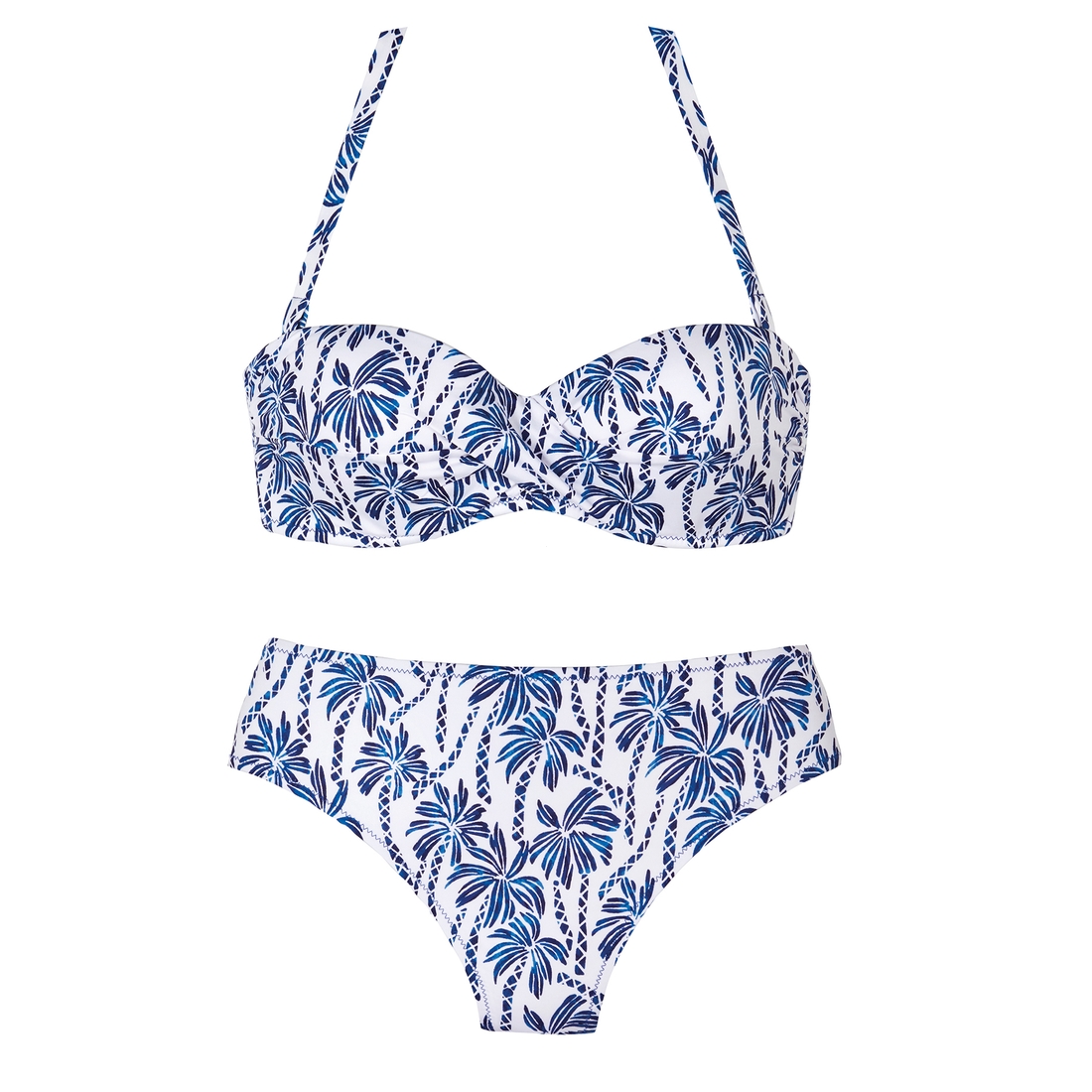 Maillot bandeau 2 pièces imprimé bleu et blanc Briana