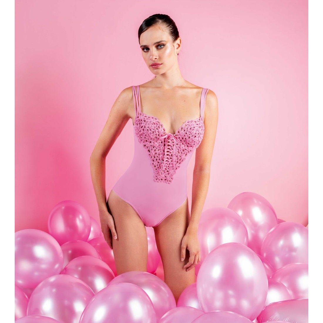 • Maillot brodé macramé avec coques